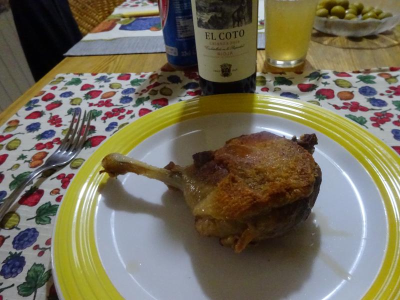 Para comer muslo de pato confitado con media botella de Tinto de Rioja El Coto, las fotos a continuación que con las prisas me he dejado la maquina de afotar en la cocina.