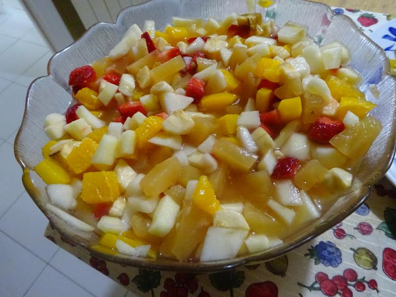Macedonia de frutas del tiempo con chorrito de Cointreau.