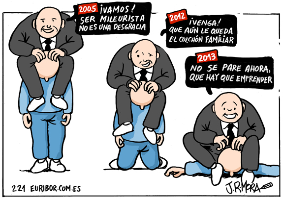 " si tus hijos pierden la casa siempre les quedará un techo,el de sus padres, pero si avalas todos podríais acabar durmiendo en la calle"