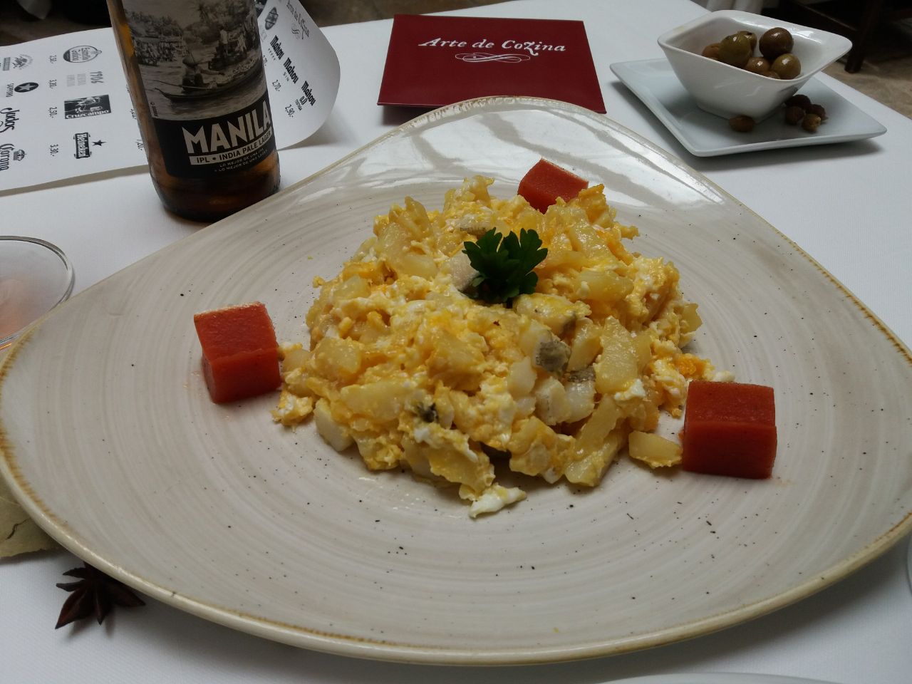 Al final deconstrucción de tortilla de jamón, tradicionalmente conocido como revuelto de jamón porque me ha salido mal la tortilla.![]()