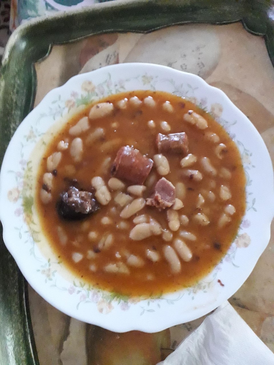 Hoy nos saltamos todas las reglas: Una fabada espesita... Que puede más el deseo que la caló ( estamos a 32º ).