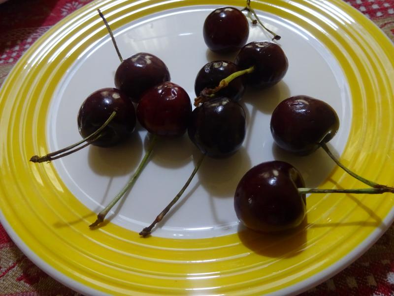 Un poco de rabo de ayer y la tajadita de salmon de pisci a la plancha para comer, de postre cerezas del Valle del Jerte y postumo homenaje al Protos 27, ha caido con todos los honores, para cenar tortilla cobarde y vaso de leche desnatada.