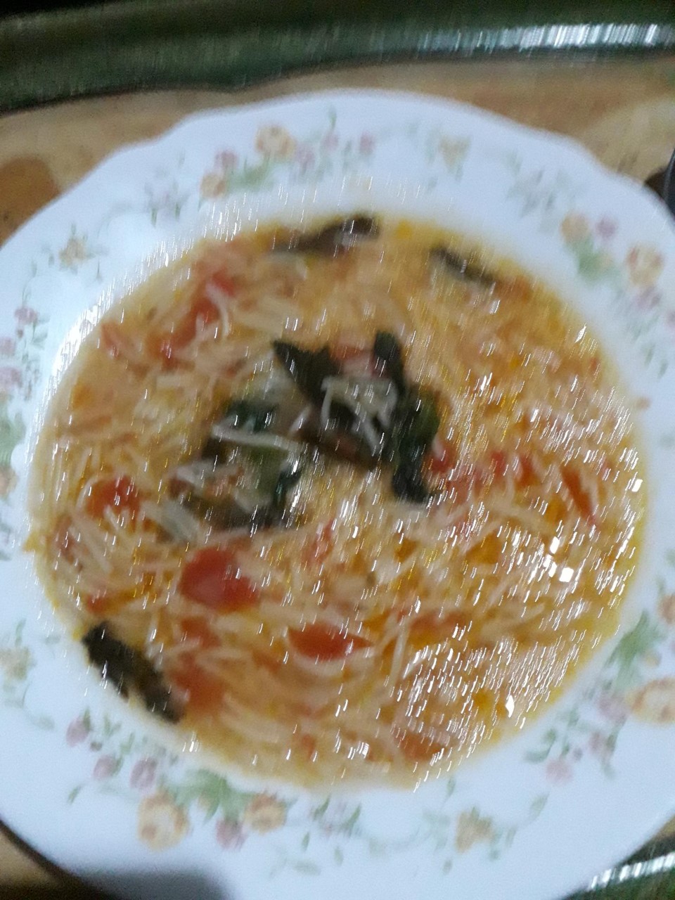 Reciclando el " fumé " de la pescada, me ha salido esta sopita divina de la muerte.