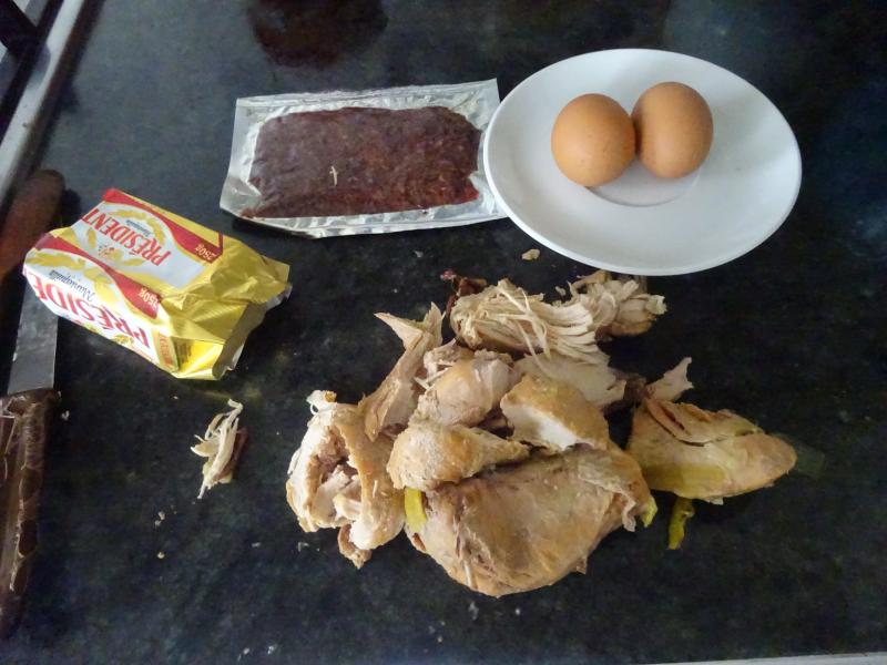 Ya tengo listos los ingredientes para hacer croquetas de gallina, jamón y huevo duro.