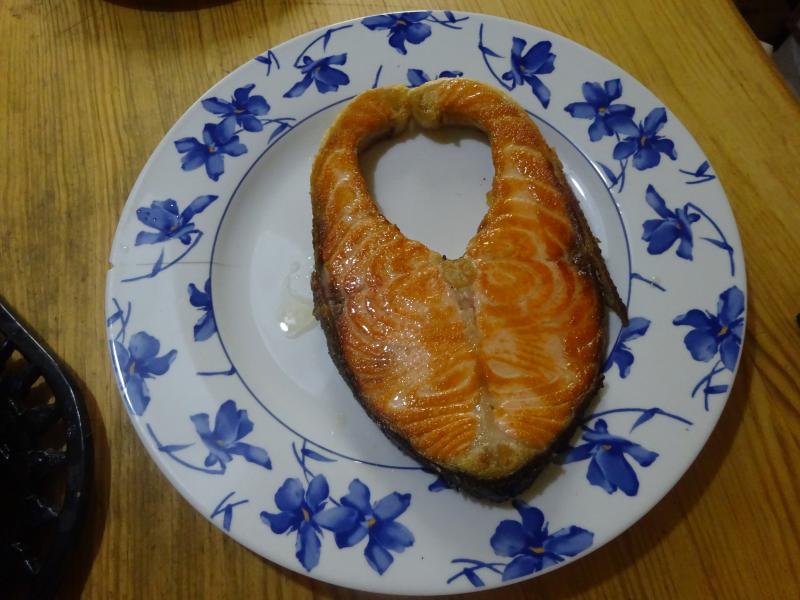 La consabida rodajita de salmón plancha y de postre queso de Burgos con membrillo para diabeticos (sabe raro).
