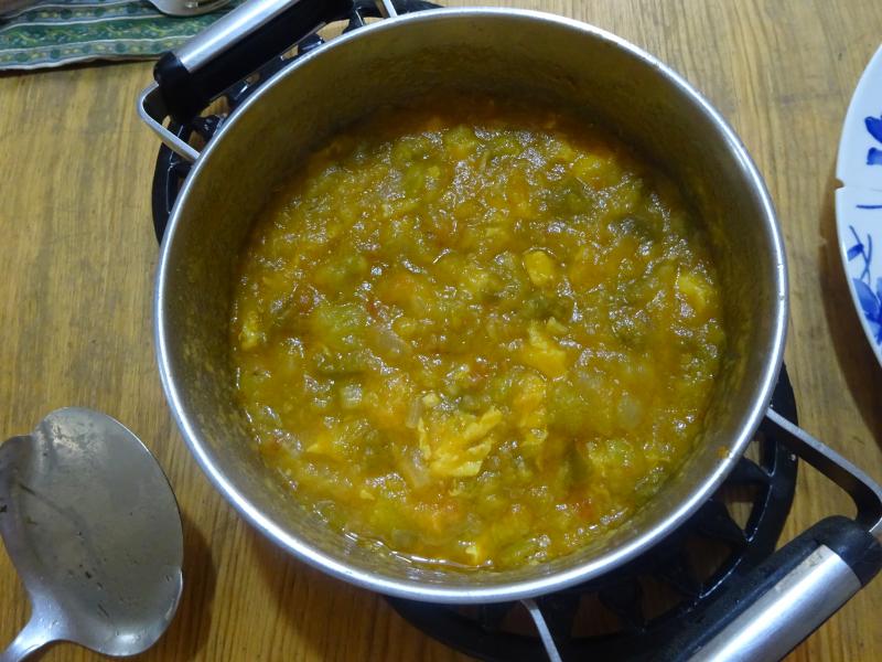 Pisto a la vasca con huevo batido en el propio pisto cuando las verduras ya están bien pochaditas.