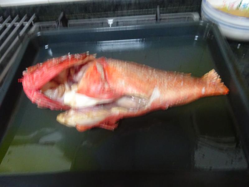 La bajada al puerto esta mañana mejor que una bajada al pilón, cabracho magnus (1,6Kgs.) por 30 euritos que han ido directos al bolsillo del arrantzale, si se entera su mujer lo muele a palos, por eso nos movemos con exquisita discreción, hoy por ti y mañana por mí.
