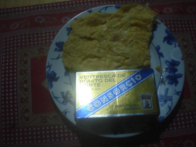 Para cenar hoy, tortilla de dos (2) huevos con ventresca del Consorcio Español Conservero de Santoña, para beber Mahou Sin que la 0,0 se me ha acabado