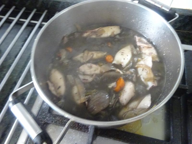 Los chipis en su tinta que preparé ayer y que han ido acompañados por una botelluca de Mateus Rosé muy frío.