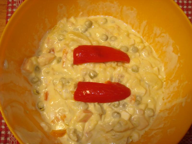 Mirad como me ha quedado la ensaladilla nacional, ¡de rechupete!, si os place puedo hacer otra para el día que me digáis y le puedo quitar los chiles o ponerle más, depende de si somos machos o solo muchos :lol: :lol: :lol: