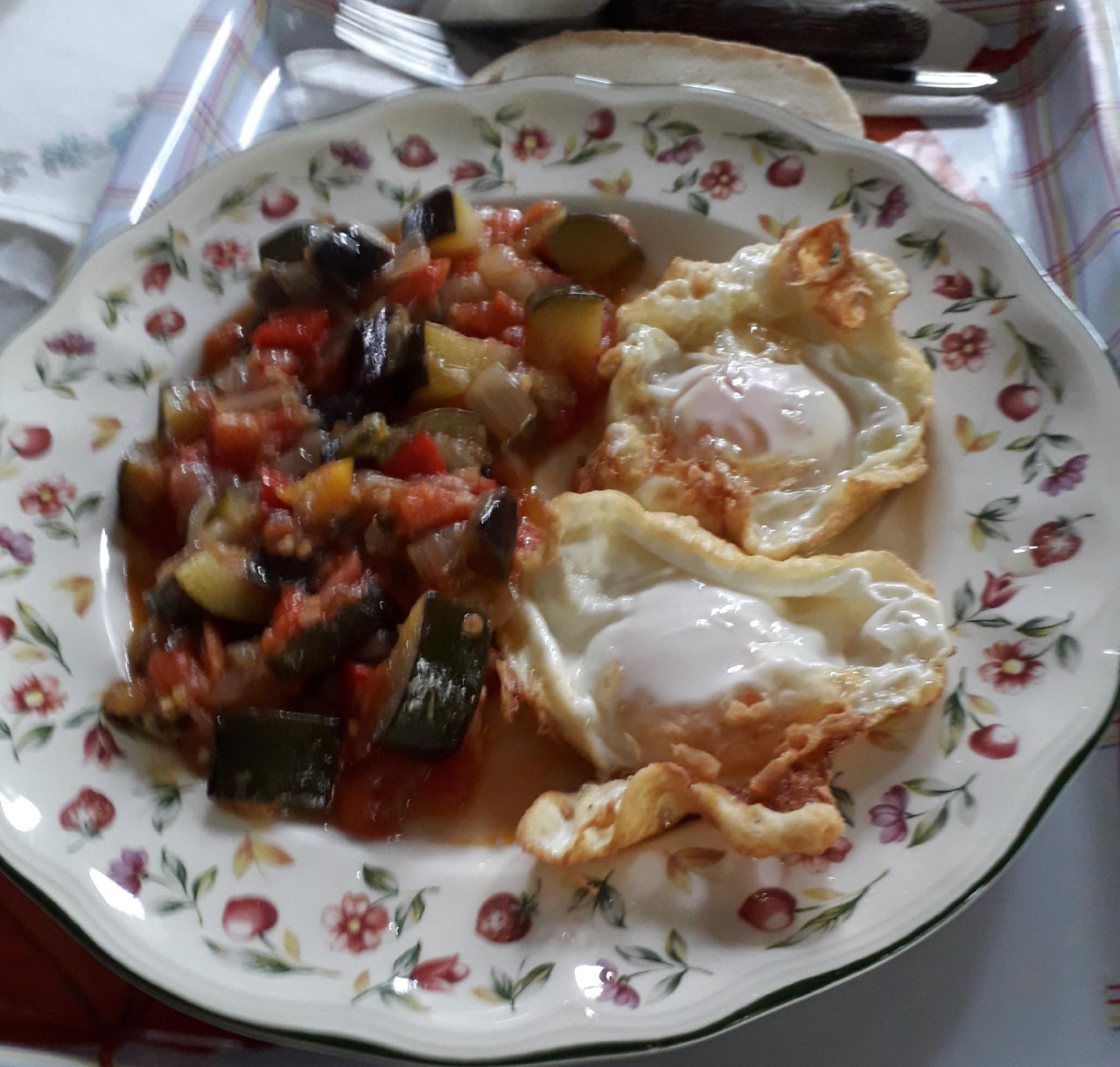Pues yo tengo una " Menestra o pisto con un par de huevos " (fritos , se sobreentiende).