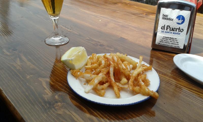 Rabas de jibion que no de pota congelada que nos hemos trajinado el kompras y un servidor despues de un caluroso pero muy agradable paseo por los alrrededores de Castro