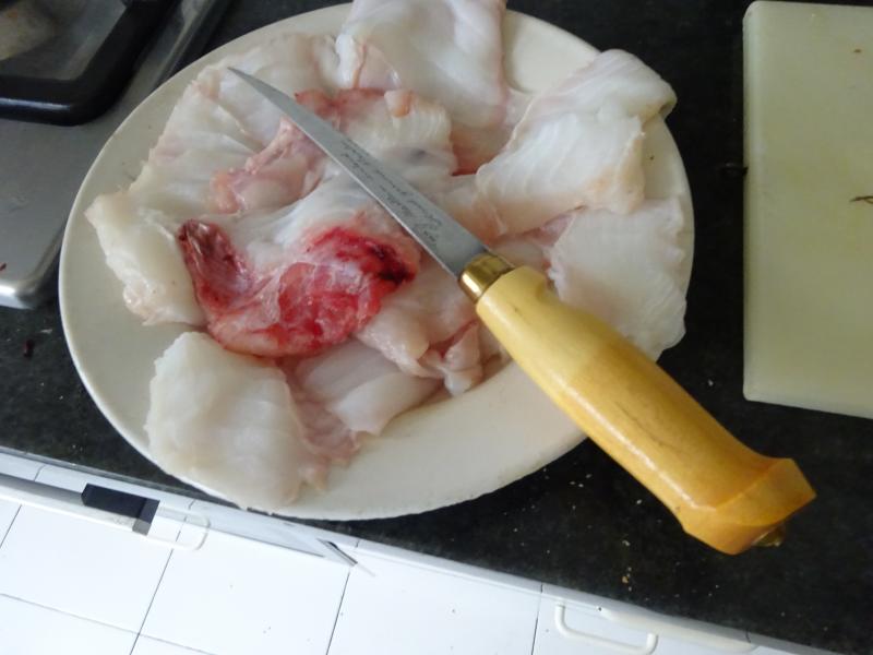 Los filetes de congrio (Conger Conger) a la romana y las fresas con misterio de postre.