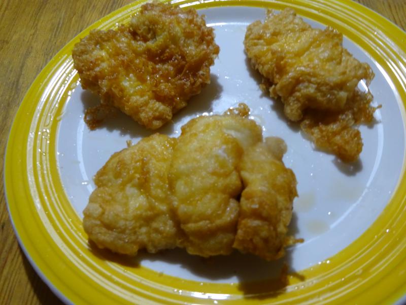 A lo que vamos, sobredosis de congrio a la romana para cenar, para beber botellín de Radler y de postre manzana reineta del Bierzo.