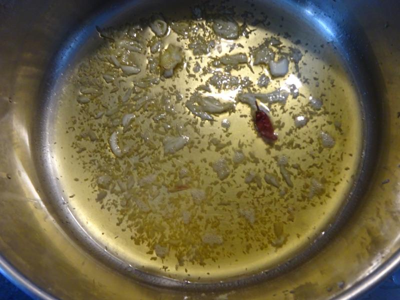 Almejas con depuración casera y cazuela con ajo picado y una guindillita para darle un poco de "garrote" esperando a los bivalvos.