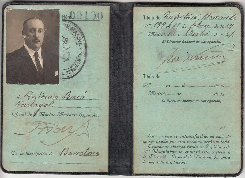 Cartera tarjeta de Capitán de la Marina Mercante expedida en 1917.