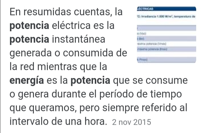 Bien, vamos mejorando. Sería mejor que estudiases un poco en lugar de soñar con modelos en tanga como antes confesaste que utilizabas para fregar los paneles, pero al menos te funciona el corta, copia y pega. Aunque claro, esperaba que añadieras un poco más a lo que ya había puesto sobre la diferencia entre potencia y energía, y con tus propias palabras, en lugar del recorte. Pero claro, cuando no se sabe redactar no hay nada que hacer.