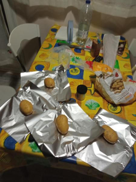 Preparando las patatas para después con aceite y sal disfrutar de ellas