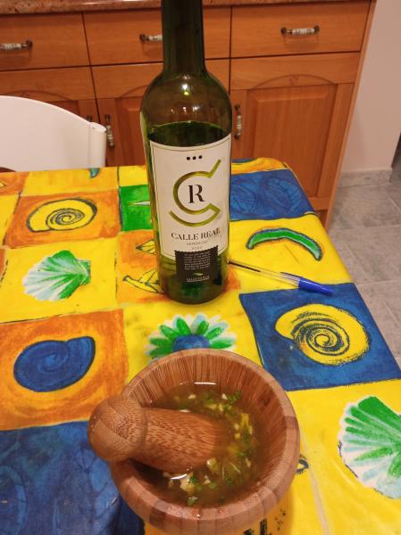 Preparando el majao para las sardinas , es para lo único que empleo el vino blanco , para los guisos , aceite , ajos , perejil todo autóctono y una chorrada de vino blanco y el zumo de medio limón