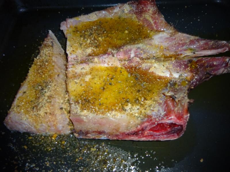 La ventresca se coloca sobre la bandeja del horno, se rocia con el aceite, pan rallado, ajo y perejil dejandola lista para el horno, el resultado es magnifico.