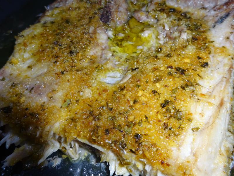 Hoy más ventresca de bonito a la provenzal, se limpia la ventresca con meticulosidad hasta que quede fetén, se salpimenta, AOVEX, pan rallado, ajo muy picado y perejil asimismo muy picado, se precalienta el horno hasta los 180ºC, se introduce durante 10 minutos y queda lista para degustar, una copita de Monopole de CVNE va de perlas.