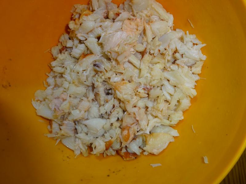 Por eso ahora 1º las fotos, bocas de Buey de Mar (Cancer Pagurus) compradas en la cetarea de las peleas entre ellos, se venden baratas, se cuecen en agua de mar y se desmigan, se hace un fondo de verduras que se añade al conjunto y se homogeiniza con 200 gramos de nata para cocinar, 50 gramos de mantequilla clarificada, dos huevos duros atomizados, chorrito de brandy quemado y pizca de pimienta negra molida y nuez moscada.