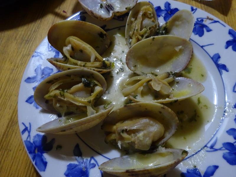 Hoy gran almejada, de cuchillo con limon y en salsa verde las mas terciaditas, para beber Monopole de CVNE varietal viura, mucho mas rico que el verdejo, que donde te veo, te dejo.