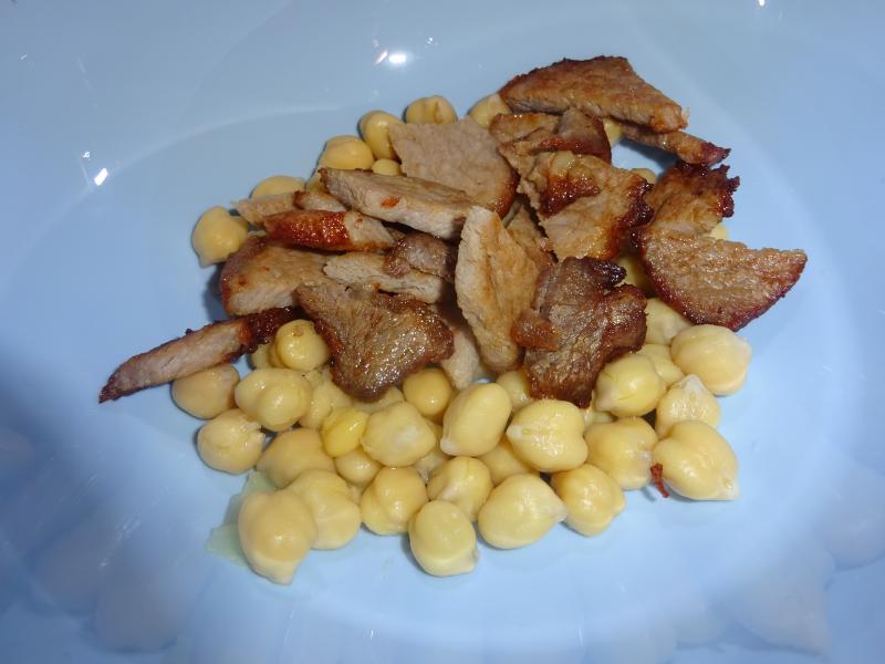 Hoy garbanzos con lomo iberico, de postre manzana y para beber mas Buckler 0,0