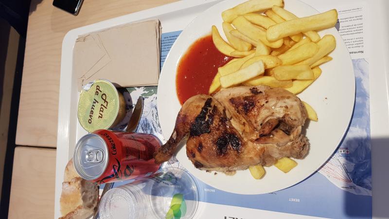 Para comer, jibiones (calamares) frescos de Castro rellenos y en su tinta con guarnición de arroz calasparreño, para beber CVNE Crianza con La Casera Gran Reserva y de postre kiwi.