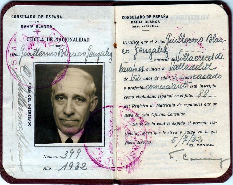 Cedula de nacionalidad Española expedida en 1932 en Argentina.
