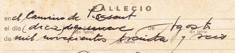 ACTA DE DEFUNCION DE 1946. Diez años despues de su muerte.
