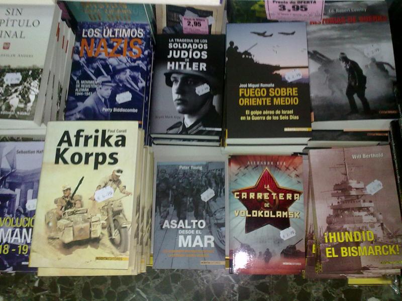 Yo andaba buscando uno, de bolsillo, no recuerdo el titulo ni el nombre del autor ... trataba de una personal al que detenia la Waffen SS y entregaba a la SS o a la Gestapo ... comentaba, mas que nada, la historia de la Waffen SS, su entrenamiento y todo eso y las diferencias entre ellos ... ¿la curiosidad? el autor era un judio.