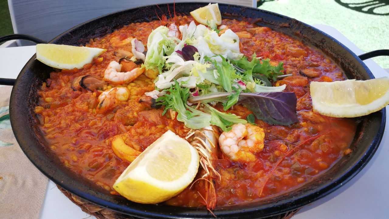 Arroz a la marinera y ensalada.