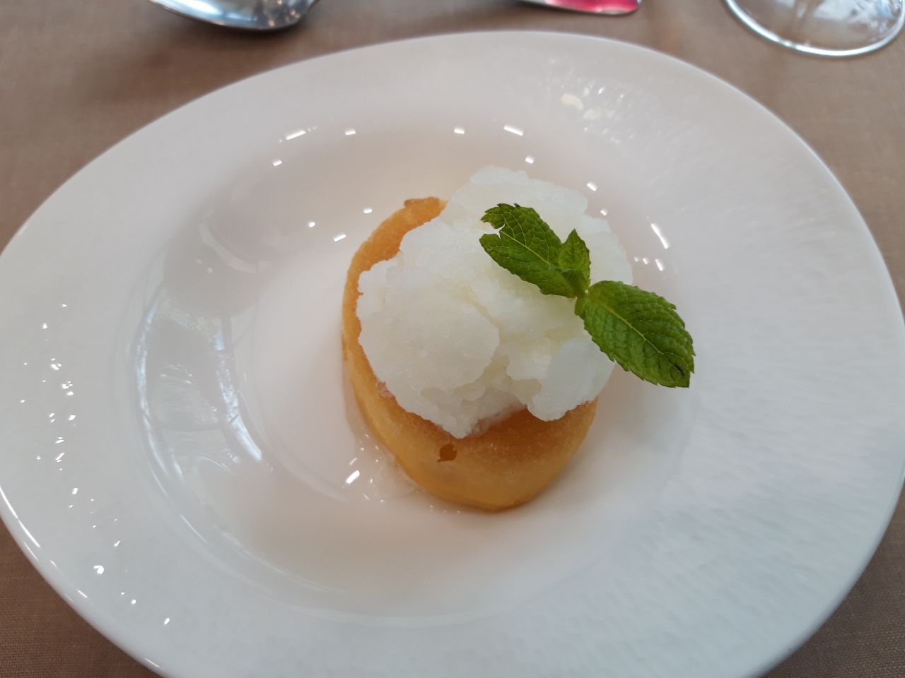 Bizcocho borracho con granizada de mojito.
