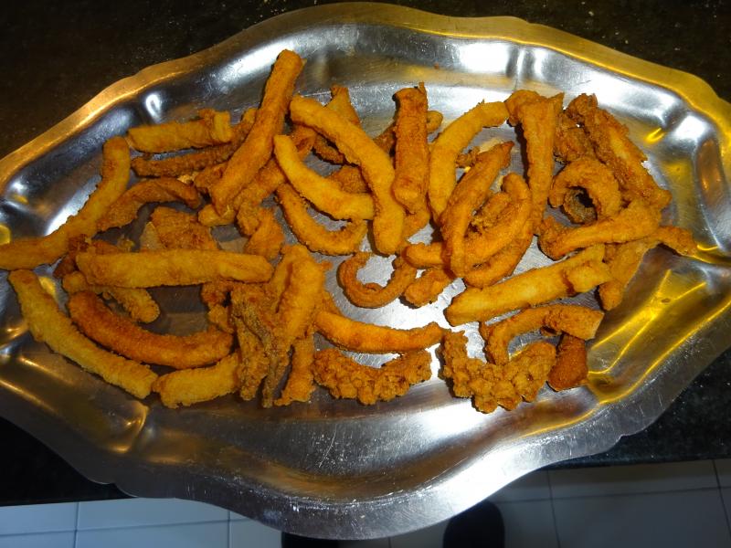 Cocochas de merluzo del Cantabrico a la romana, es decir albardadas con harina y huevo vuelta y vuelta por AOVEX caliente y abundante.