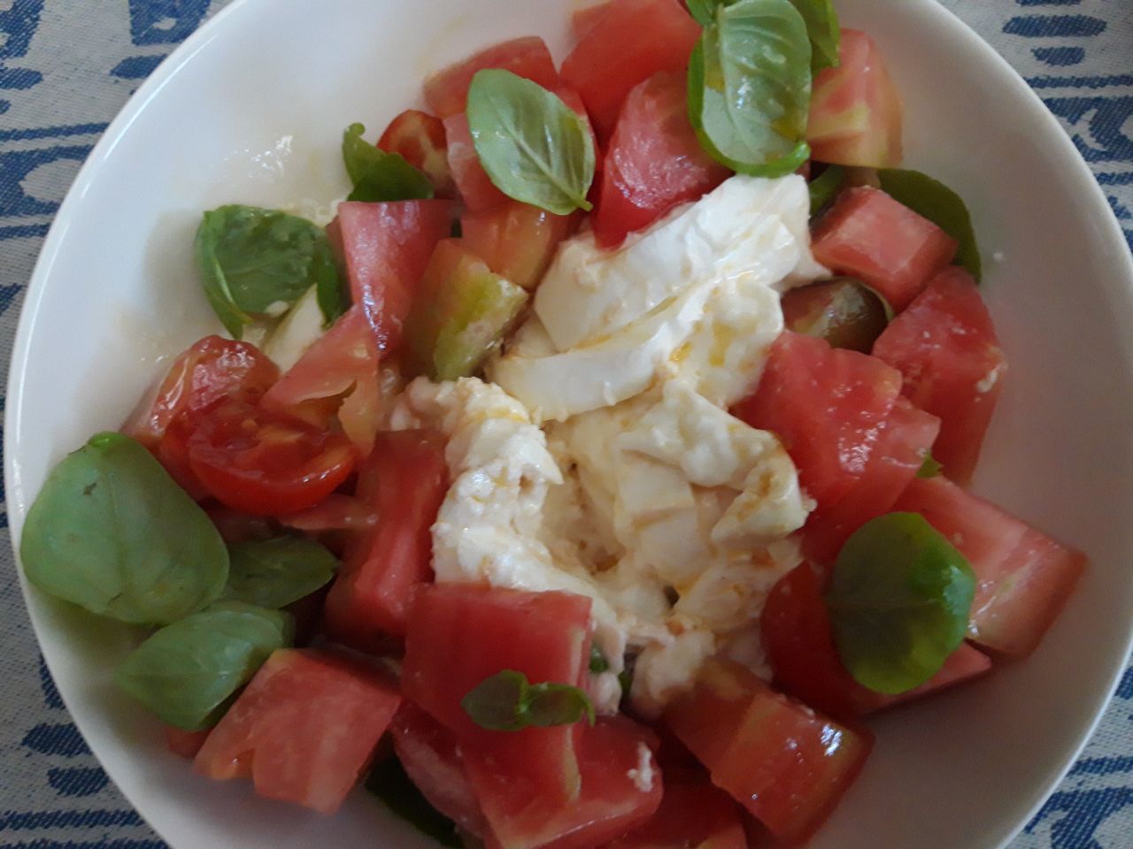 Hoy : Cus Cus de verduras, frutos secos, manzana, etc, con salchichas Bratwurst, y ensalada de tomate de la tierra con mozzarella de leche de búfala y albahaca.
