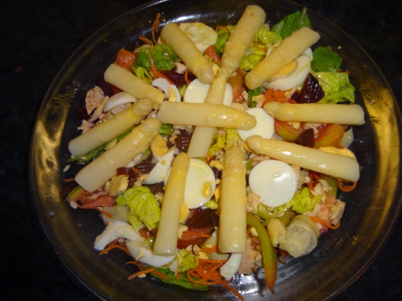 Komprasman escribió:Como parece que hoy vamos de ensaladas, ahí va la mía para cenar, con yemas de esparragos navarros de Vela, alcachofas baby, cogollos de Tudela etc etc, la he aliñado con sal Maldon, vinagre Louit al estragón y AOVEX varietal Arroniz de Navarra.