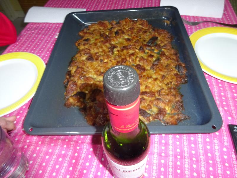La cena de hoy, sopa de ajo sec a al horno con lo que quedba de la botelluca de Alberdi 2015.