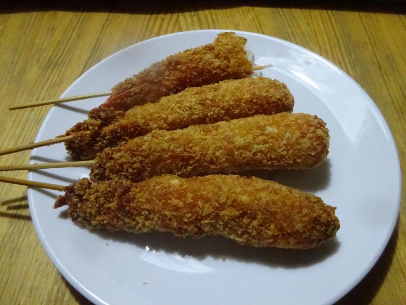 Mis langostinos van embrochetados y pasados por varias harinas de trigo duro, se fríen y se acompañan con varias salsas a cual mas sabrosona, Mayonesa Atabascada, Romescu y Chimichurri.