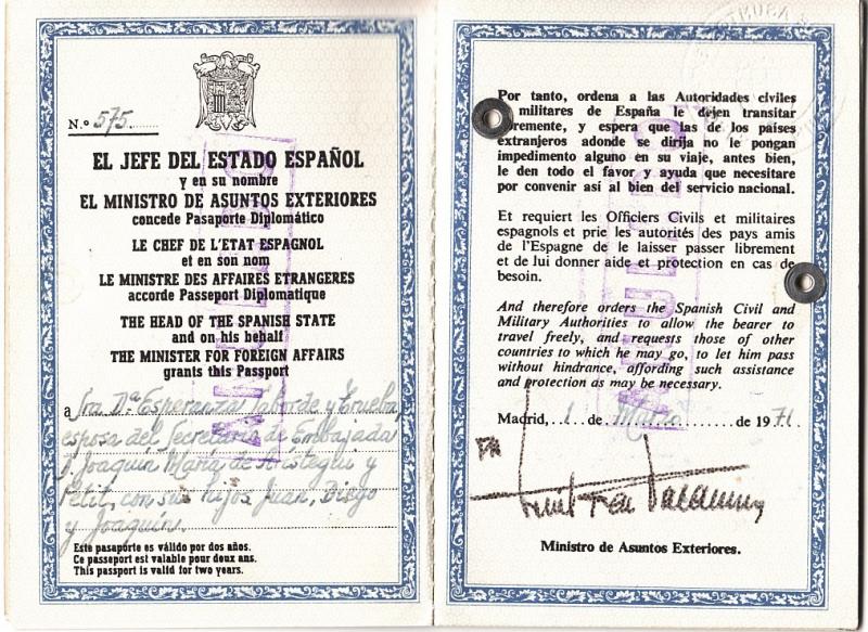 En la foto del Pasaporte Diplomatico la madre y hijos, el documento es de 1971.
