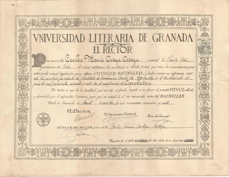 Expedido por la UNIVERSIDAD LITERARIA DE GRANADA