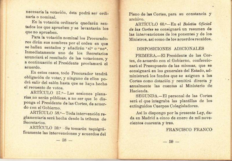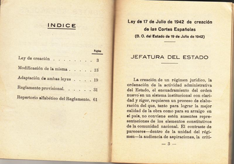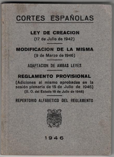 Librito del Reglamento de las Cortes Española. de 1942 y 1946.