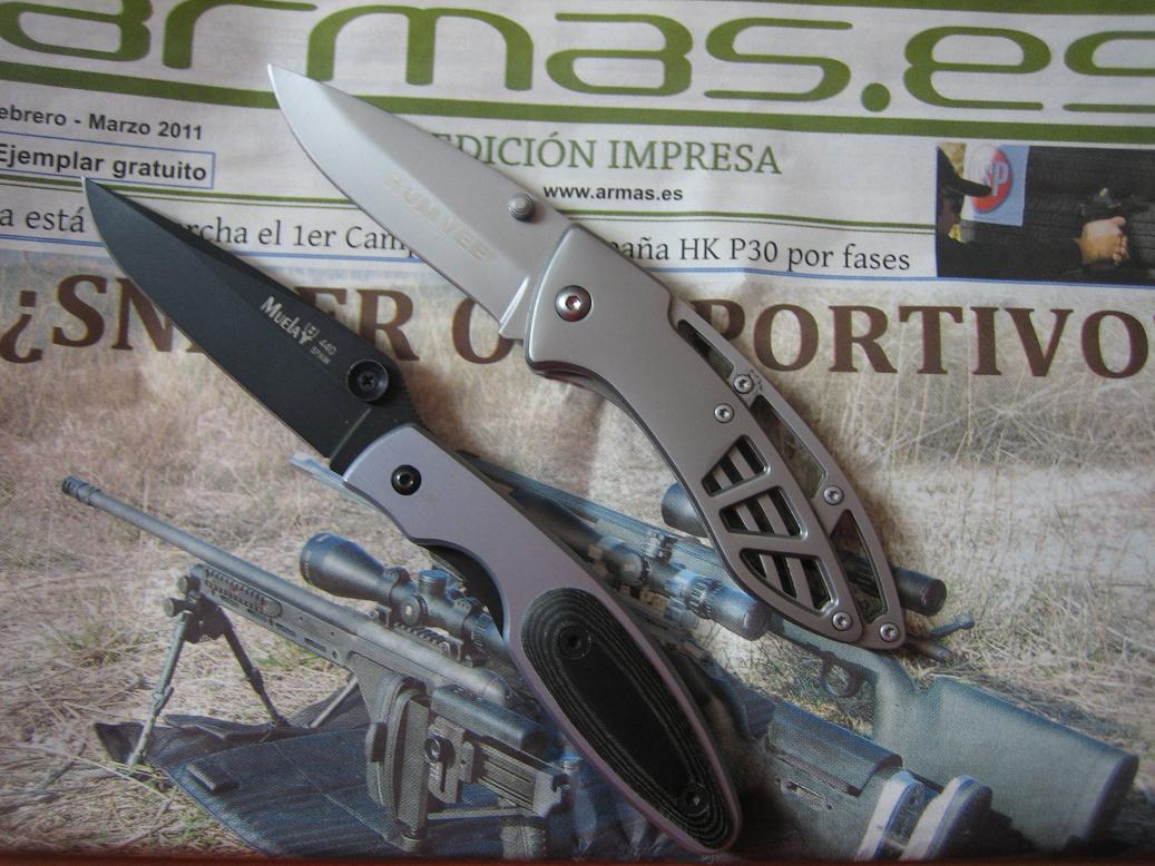 Os pongo una foto de la navaja con una Pocket de Muela, para que os hagáis una idea del tamaño