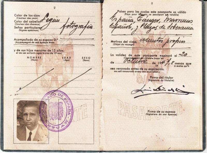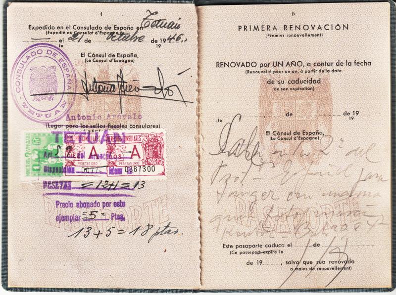 Pasaporte expedido en Tetuan ( Marruecos ) en octubre de 1946.