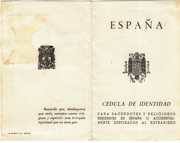 Cédula de Identidad Sacerdotal de 1954