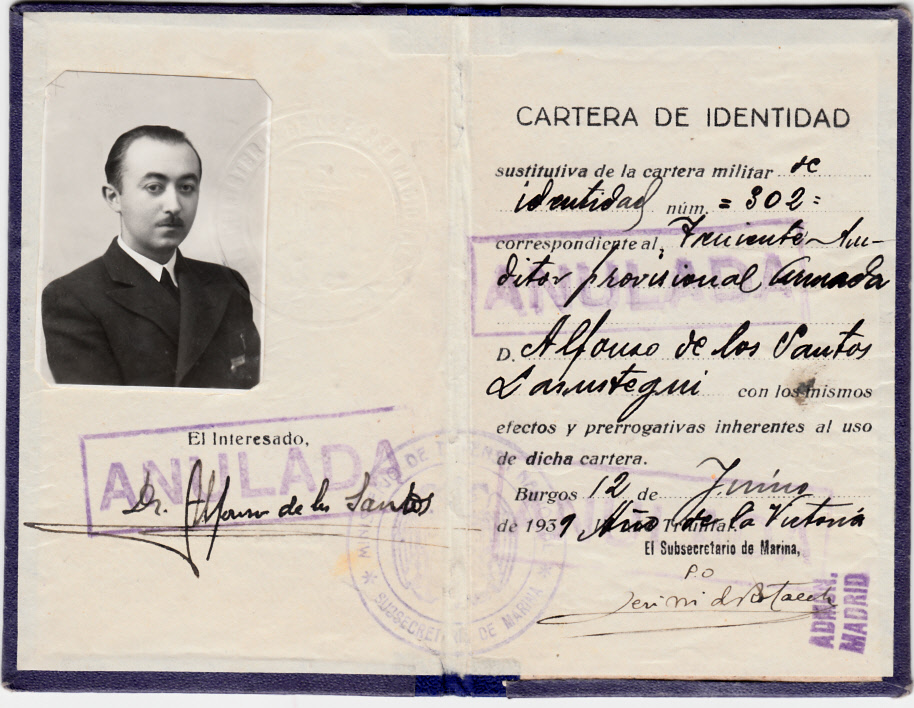 Cartera de Identidad de 1939 . Marina de Guerra Española.