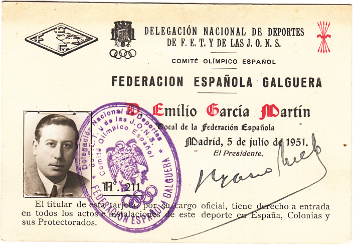 Y vocal de la Federación Española Galgera en 1951.