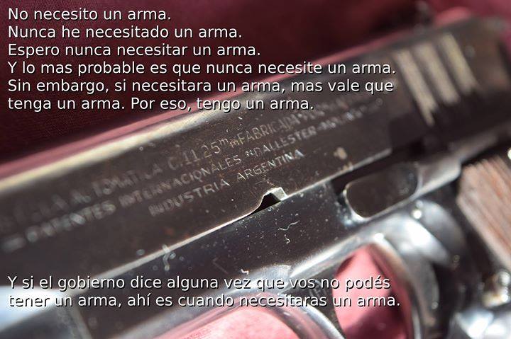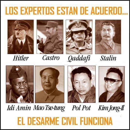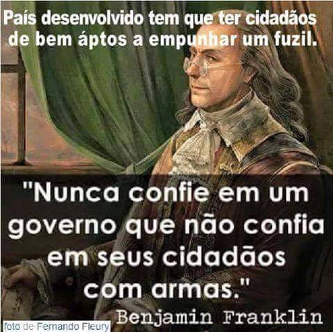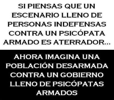 "Nunca confies en un gobierno que desconfia que sus ciudadanos tengan armas." -Benjamin Franklin".