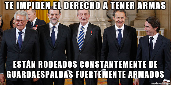 454 Casull escribió:Las armas solo las quieren tener ellos, y ellos son la Guardia Civil y otros cuerpos.