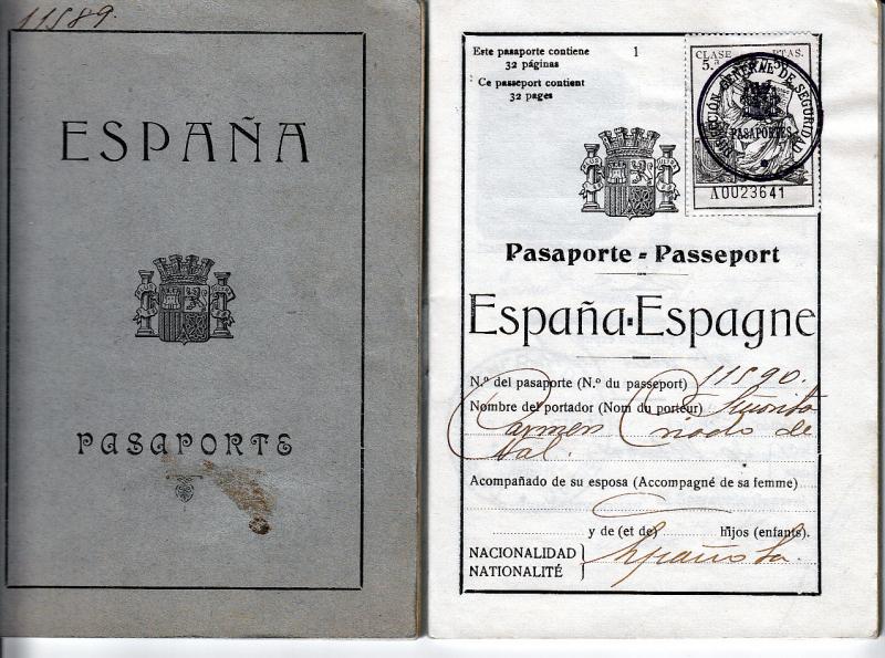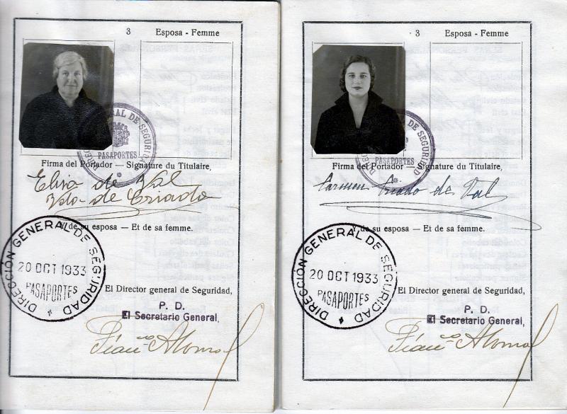 Dos curiosos Pasaportes correlativos de Madre e Hija, expedidos en Madrid en el 20 de Octubre de 1933.